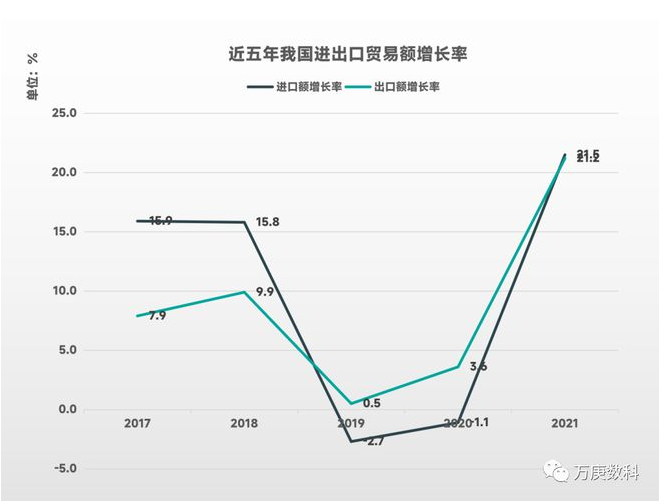 一、前言。 1、進出口貿(mào)易簡介。 進出口貿(mào)易由進口貿(mào)易和出口貿(mào)易組成,即跨越國境的貨品和服務(wù)交易。它具有調(diào)節(jié)國內(nèi)生產(chǎn)要素利用率、改善國際間供求關(guān)系,調(diào)節(jié)經(jīng)濟結(jié)構(gòu)、增加財政收入等重要作用。 進出口貿(mào)易按照貿(mào)易內(nèi)容,主要可分為加工貿(mào)易、一般貿(mào)易和服務(wù)貿(mào)易等。其中,加工貿(mào)易是指企業(yè)進口料件(零部件、元器件、原輔材料等)并經(jīng)過加工或裝配后,將其制成品復(fù)出口的經(jīng)營活動1。一般貿(mào)易則是與加工貿(mào)易相對而言的貿(mào)易方式,指單邊輸入/輸出關(guān)境的進出口貿(mào)易方式,其交易貨物是企業(yè)單邊售定的正常貿(mào)易的進出口貨物。服務(wù)貿(mào)易指一國的法人或自然人向外國的法人或自然人提供服務(wù)的貿(mào)易行為,包括商業(yè)服務(wù)、通信服務(wù)、建筑工程服務(wù)、金融服務(wù)等。三者在一國進出口貿(mào)易總額中的占比,能夠直觀反映出該國的進出口貿(mào)易現(xiàn)狀。 2、國內(nèi)外貿(mào)易形勢。 自2020年新冠疫情爆發(fā)以來,世界各國經(jīng)濟遭受了不同程度的沖擊,國際進出口貿(mào)易曾一度陷入大幅停滯的狀態(tài),貿(mào)易保護主義措施顯著增加。2021年,隨著多國防疫政策的調(diào)整,世界進出口貿(mào)易在疫情持續(xù)起伏的狀況下迎來一定程度的復(fù)蘇。但同時也面臨著大宗商品價格上漲、全球能源供應(yīng)緊缺、產(chǎn)業(yè)鏈供應(yīng)鏈壓力劇增等一系列挑戰(zhàn)。2022年初至今,世界政治局勢出現(xiàn)動蕩,烏俄沖突持續(xù)發(fā)酵、歐洲能源危機問題凸顯、歐美等發(fā)達國家加快收緊宏觀政策等,一定程度上影響全球經(jīng)濟格局,使世界進出口貿(mào)易走向更加撲朔迷離。 我國在疫情爆發(fā)初期,部分地區(qū)生產(chǎn)、生活受到了較大影響,但隨著政府快速有力的防疫政策實施,我國成為疫情發(fā)生以來全球首個恢復(fù)增長的主要經(jīng)濟體,一定程度上帶動了國內(nèi)進出口貿(mào)易的有序恢復(fù)。2021年以來,我國經(jīng)濟持續(xù)穩(wěn)定復(fù)蘇,生產(chǎn)穩(wěn)中有升,市場預(yù)期向好,皆為進出口貿(mào)易提供了良好的經(jīng)濟環(huán)境。此外,我國積極推進貿(mào)易便利化改革創(chuàng)新,加快文化、數(shù)字服務(wù)等領(lǐng)域特色服務(wù)出口基地建設(shè),擴大自貿(mào)區(qū)、自貿(mào)港等試驗區(qū)范圍與自主權(quán),構(gòu)建面向全球的高標準自貿(mào)區(qū)網(wǎng)絡(luò),以高水平開放支撐進出口貿(mào)易發(fā)展2。 二、現(xiàn)狀分析。 1、我國進出口額與其增長率。 2017-2021年間,我國進出口貿(mào)易總額整體保持增長態(tài)勢。其中,2019年進出口額增長率皆出現(xiàn)了較明顯下降,2020年增長率略微回升,并在2021年快速攀升,二者增長率皆達到21%以上。 究其原因,2019年全球經(jīng)濟增速放緩,單邊主義、保護主義抬頭,歐美與我國貿(mào)易摩擦頻發(fā),國際進出口貿(mào)易形勢嚴峻復(fù)雜。雖然國內(nèi)經(jīng)濟保持平穩(wěn)運行,政府持續(xù)擴大開放力度、提高進出口貿(mào)易質(zhì)量,但國際貿(mào)易形勢的影響仍導(dǎo)致當年我國進出口貿(mào)易增速出現(xiàn)較大下滑。2020年新冠疫情爆發(fā),各國經(jīng)濟出現(xiàn)不同程度的衰退,我國雖以較快的速度控制疫情、恢復(fù)生產(chǎn),但國際消費市場的萎縮仍對我國進出口貿(mào)易的增長帶來較大限制。2021年,世界主要經(jīng)濟體調(diào)整防疫政策,加之世界經(jīng)濟加速復(fù)蘇,使得我國進出口額迎來了快速增長。這表明,我國進出口貿(mào)易額受世界經(jīng)濟形勢影響較大,具有較強的周期波動性。 此外,從近五年我國進口貿(mào)易額與出口貿(mào)易額的規(guī)模來看,我國出口貿(mào)易額皆大于進口貿(mào)易額,且差距有擴大之勢。表明我國對外貿(mào)易狀態(tài)屬于貿(mào)易順差,這一方面反映我國在對外貿(mào)易中處于較有利地位,另一方面反映我國經(jīng)濟增長對外部需求的依賴增加。 2、國際進出口貿(mào)易總額。